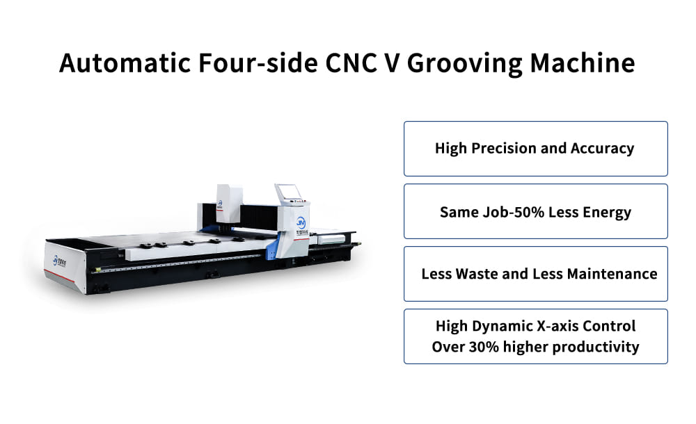 Mașina CNC V Groove are o masă de lucru deschisă, cu picioarele de presare cu două fețe pentru fixare fermă și un film de jos cu daliere mare pentru procesarea fără marcaje.